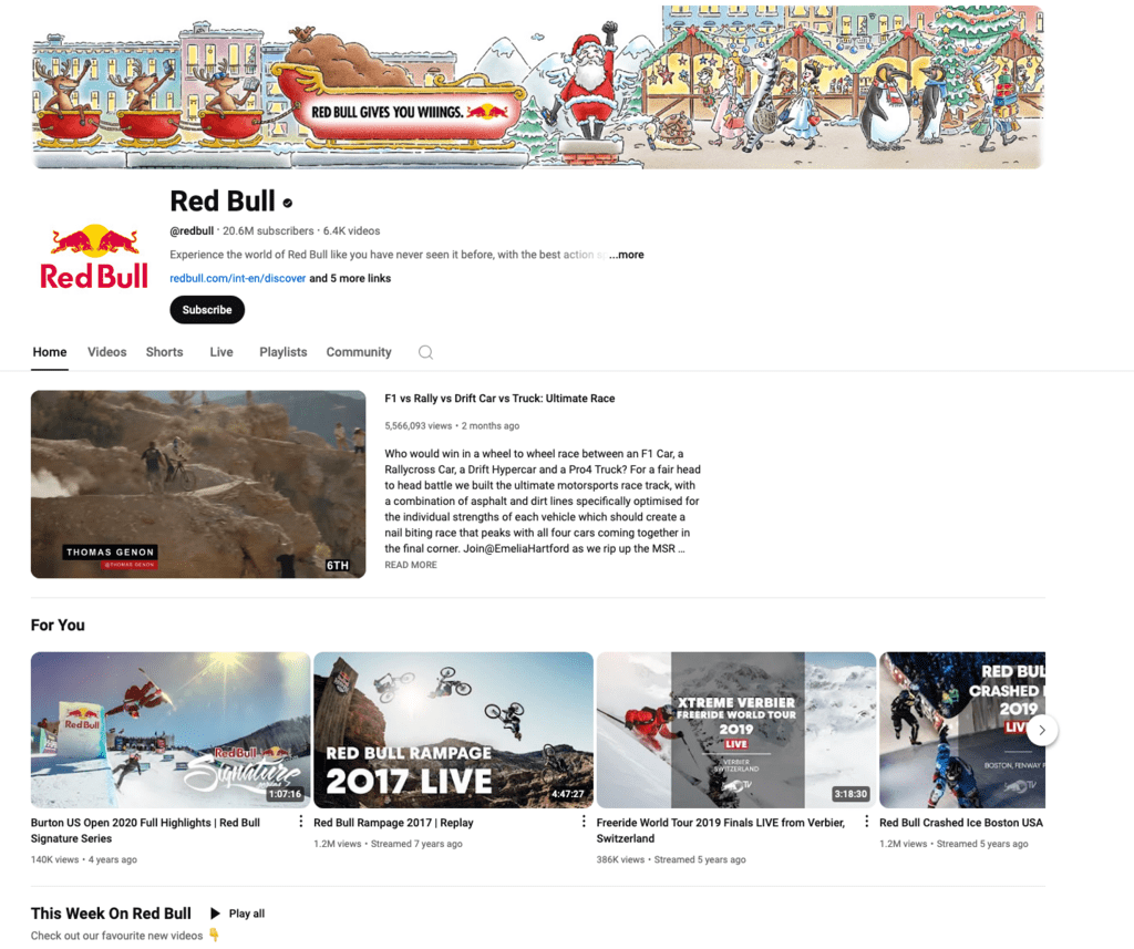 - Red Bull TV: From documentaries to live events, Red Bull built an entire entertainment platform around adventure sports.